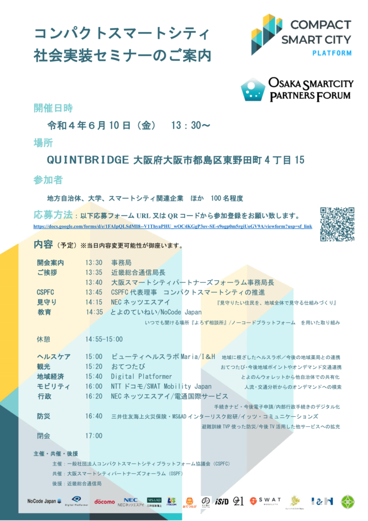また、午前中は同じ会場で大阪スマートシティパートナーズフォーラム様主催の『令和4年度第3期OSPFプロジェクト発表会』が開催されます。